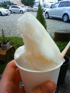 しかしお盆だけにめちゃくちゃお客さんが来てました。何事かい!と思いつつ、大手サークルの列に比べればなんのその!今回はしぼりたて牛乳と梨のダブルを注文しました。