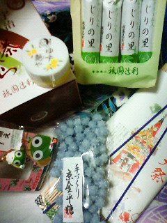 で、珍しい包みが入ってるなーと見てみたら、一度は食べてみたかった緑嘉庵清水の金平糖が(≧▼≦)しかも祇園祭パッケージ!すんげぇ!