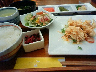 ここは内装や雰囲気が好きなんでオススメでっす。番長。はナシゴレン、niccoたんはパスタランチ、私は本日のランチをチョイス。ナシゴレンは限定15食だけど大丈夫でした♪また食べたい!と言ってたから良かったね番長。(o^∀^o)しかも出来上がるのが早かった!私の頼んだランチが一番遅かったとです。
