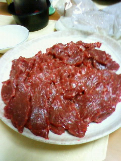 締めは番長。持参、本場熊本の馬刺で日曜の食い道楽は幕を閉じました♪