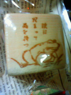 日照りが続こうが、己が干からびようが、忍耐強く雨を待つ。そんな漢なカエルをハンコにしていただきました。