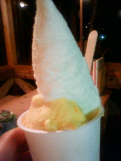 締めはさらに西にある「ドルチェ」のジェラートへ♪定番しぼりたて牛乳と、今回初めてのカボチャをチョイス。